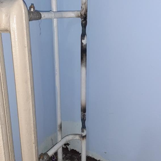 O secador aquece as mãos das pessoas nas ruas.