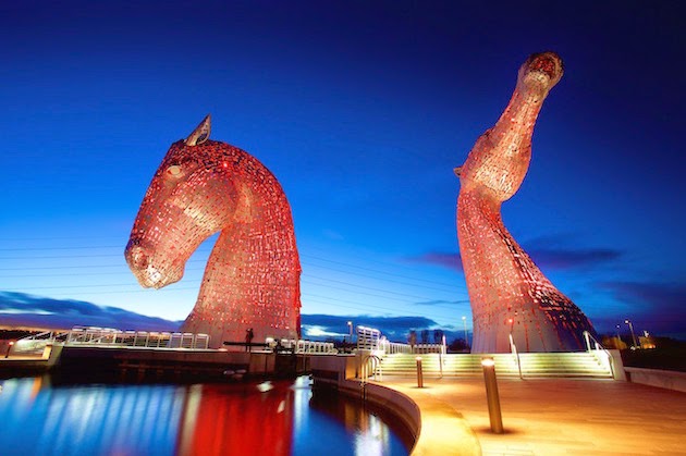 15 – Os Kelpies: esculturas de cabeça de cavalo de 30 metros de altura perto do Rio Carron, na Escócia