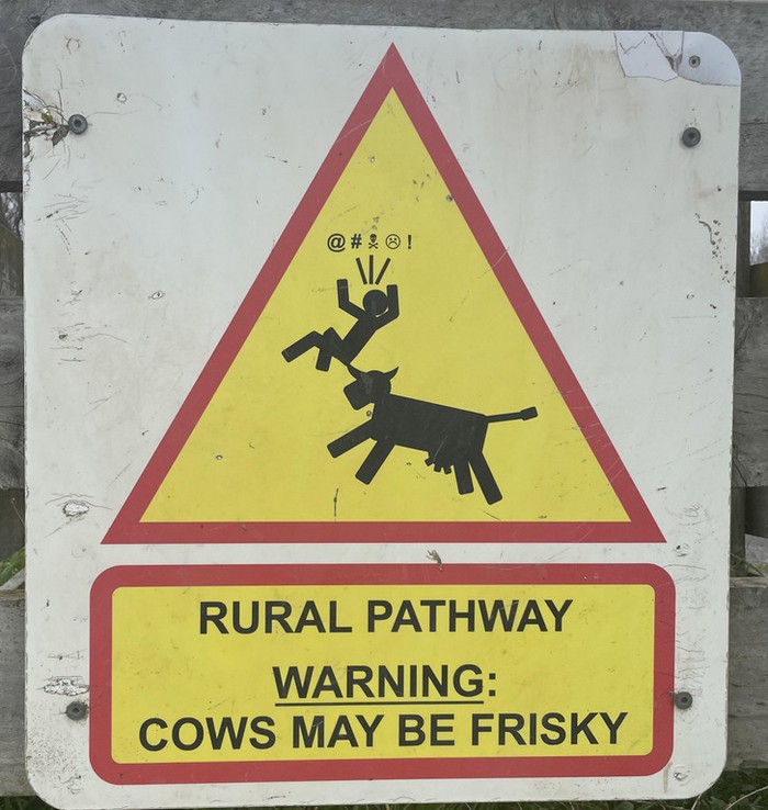 17 – Essa placa em uma ciclovia na Nova Zelândia alerta sobre “vacas brincalhonas”