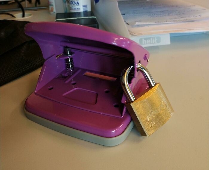 20 – Só assim para o colega de trabalho não pegar mais o seu furador