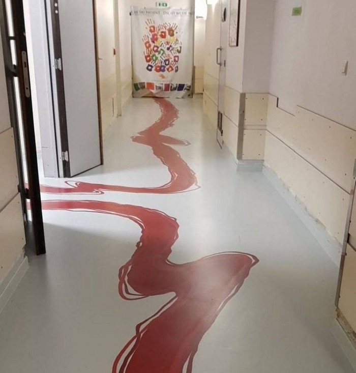 6 – A forma como o chão do hospital foi pintada o transformou em uma cena de crime