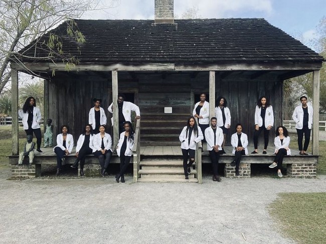 7 – “Em pé na frente dos quartos de escravos de nossos antepassados, no Distrito Histórico da Plantação de Whitney (museu dedicado à escravidão no sul dos Estados Unidos) com meus colegas da faculdade de medicina. Somos verdadeiramente os sonhos mais loucos dos nossos antepassados”