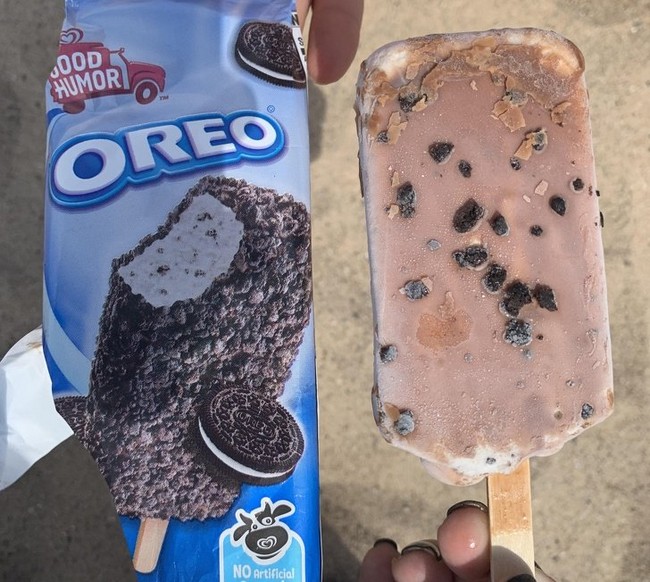 18 – Quando o sorvete tem pedaços de morango, mas na verdade não tem