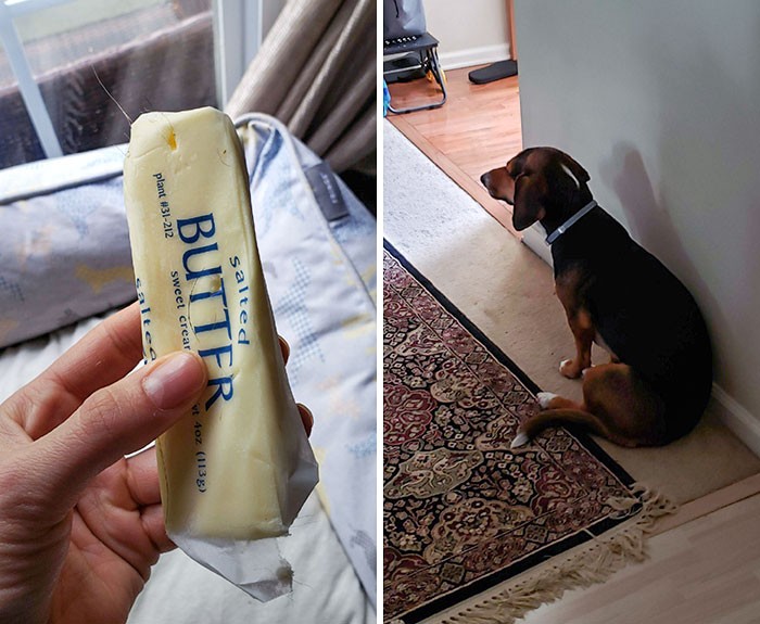 4 – “Encontrei o estoque de manteiga do meu cachorro esta manhã, enterrado em sua cama. Ele não quer falar sobre isso”