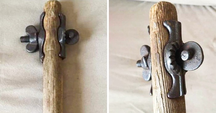 7 – “Algum tipo de ferramenta manual? Há uma porca borboleta de um lado e uma ponta redonda do outro que parece poder ser encaixada em diferentes entalhes”