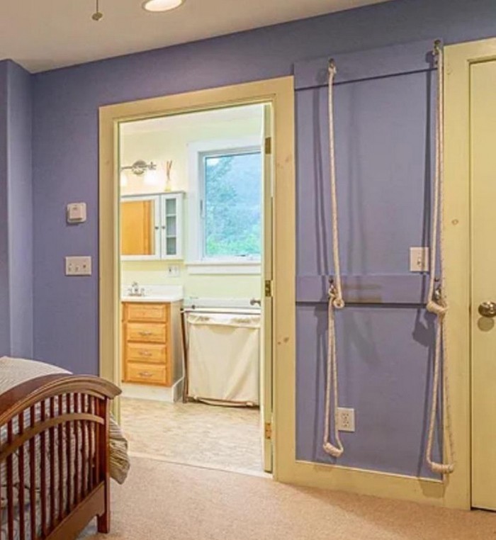 Resposta: “Meu amigo tem uma configuração parecida com esta, e é uma “parede de ioga”. Acho que existem alguns movimentos de ioga em que você usa cordas para alongar.”