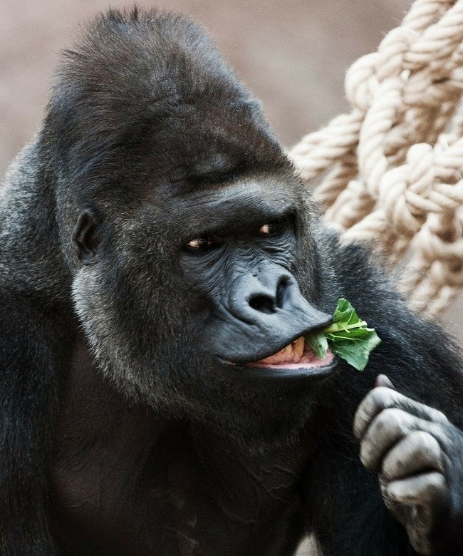 Gorilas costumam ser vegetarianos. Mas, para proteger seu grupo, eles não apenas usam suas patas, mas também suas mandíbulas poderosas que podem morder quase qualquer coisa.